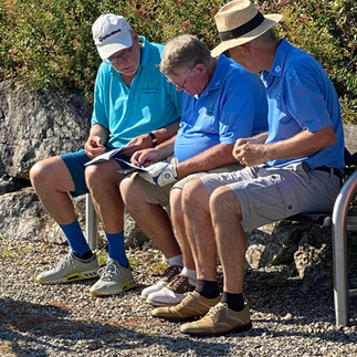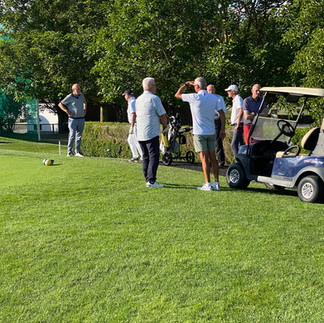 Das Ende kam bereits an Loch 18, wo der 2. Schlag Lothars im Bunker endete und der Sandschlag den Ball nicht aufs Green beförderte. Der schöne Vorsprung war vergeben, Stechen wurde nach vielen Jahren wieder einmal notwendig. Von Club Captain Herbert Sutter an den Start gebeten, wo die Abschlagreihenfolge durch Teewurf bestimmt wurde, ging es ins Stechen auf Bahn 1 und würde fortgesetzt bis zum "Sudden Death"
